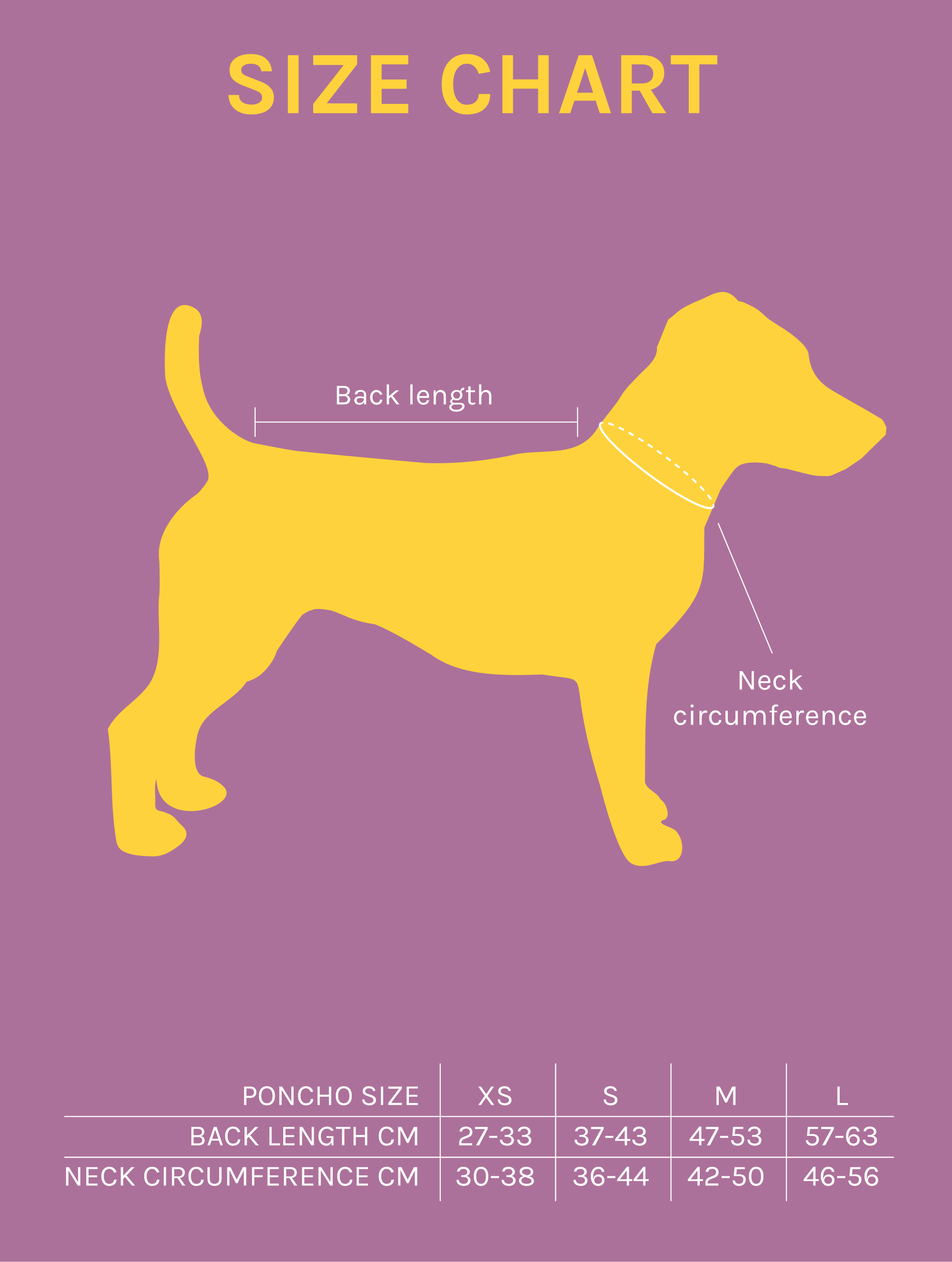 새로운 Rainkiss 강아지 폰초 컬렉션을 만나보세요. 4가지 놀라운 프린트와 4가지 사이즈로 출시되어 모든 크기의 강아지에게 완벽합니다. 저희 강아지 폰초는 고품질의 100% 재활용 폴리에스터로 제작되었으며 편안한 메시 안감으로 디자인되었습니다. 강아지 폰초는 조절 가능한 배 끈과 후드, 목 아랫부분에 끈 구멍, 야간 산책 시 조명을 위한 추가 부착물이 특징입니다. 뒷다리에 탄력 있는 밴드가 있어 강아지가 비 속에서도 달리고 놀 수 있습니다.
