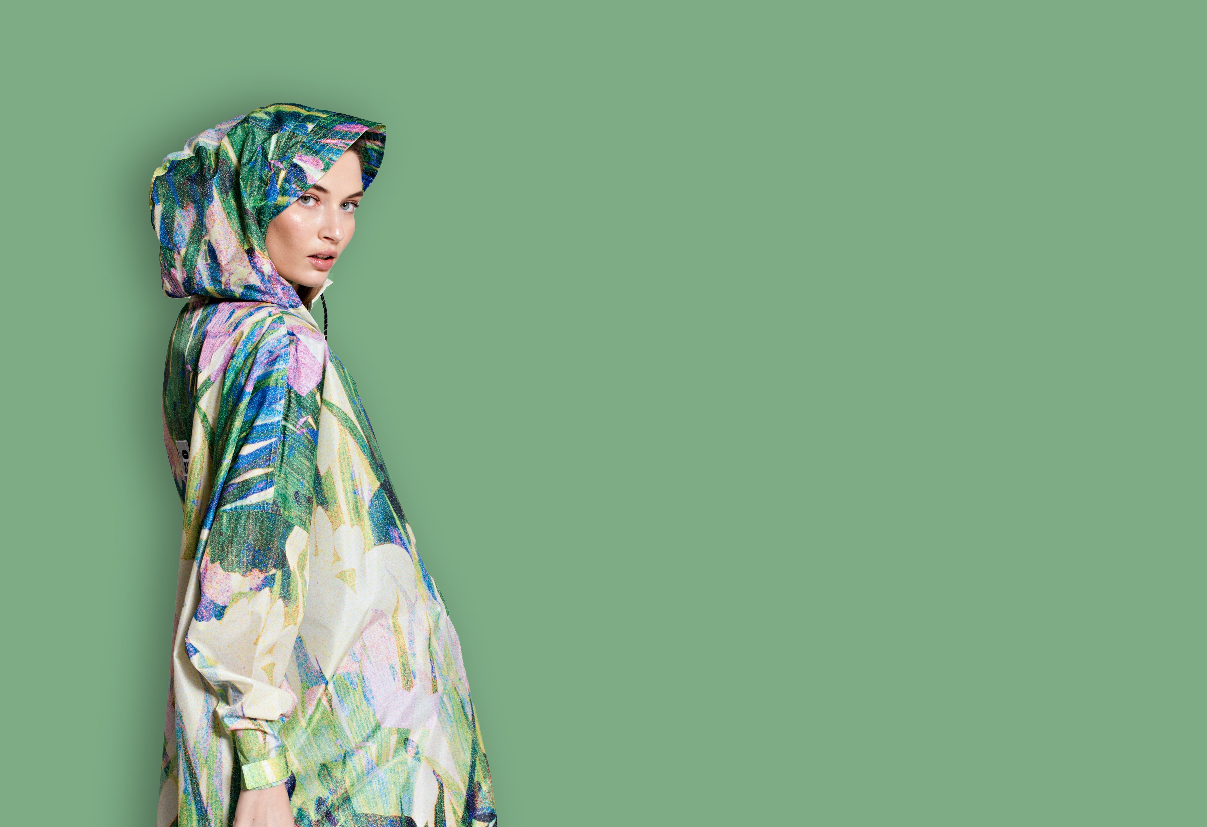 By combining quality materials and responsible manufacturing with cutting-edge designs. Each Rainkiss piece is made from 100% recycled polyester.